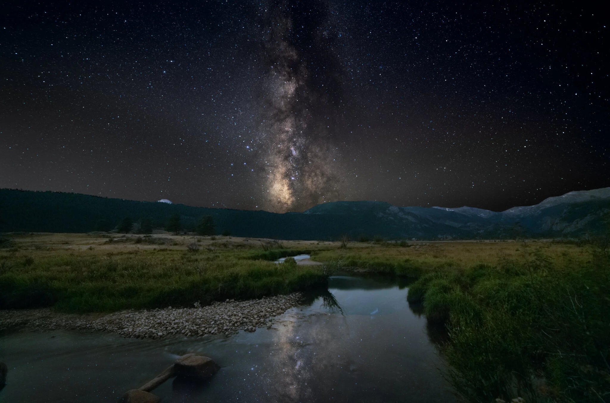 This was from the first time I shot the Milky Way in Rocky Mountain National Park. It was a September evening, and another time I stood under the stars listening to the Elk bugle. The way the Big Thompson leads your eye into the scene, even giving you a sneak peek of the Milky Way, really caught my attention when I lined up for this shot. Another memorable experience, just basking in the amazing piece of nature that RMNP is.
