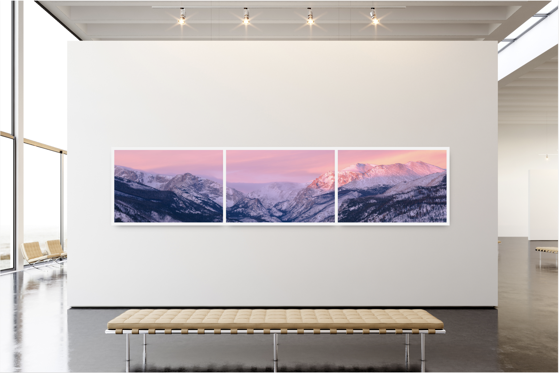 Bring a Rocky Mountain Sunrise to you hallway, loft, or office. Bright colors, and fine details of the mountains will pop off your wall. Three sizes, including a 9 foot by 2 foot panorama that would look great in a corporate reception area.
